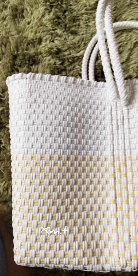 メキシコ、オアハカ州の生産者さんにより再生プラスチックコードで丁寧に編まれています。