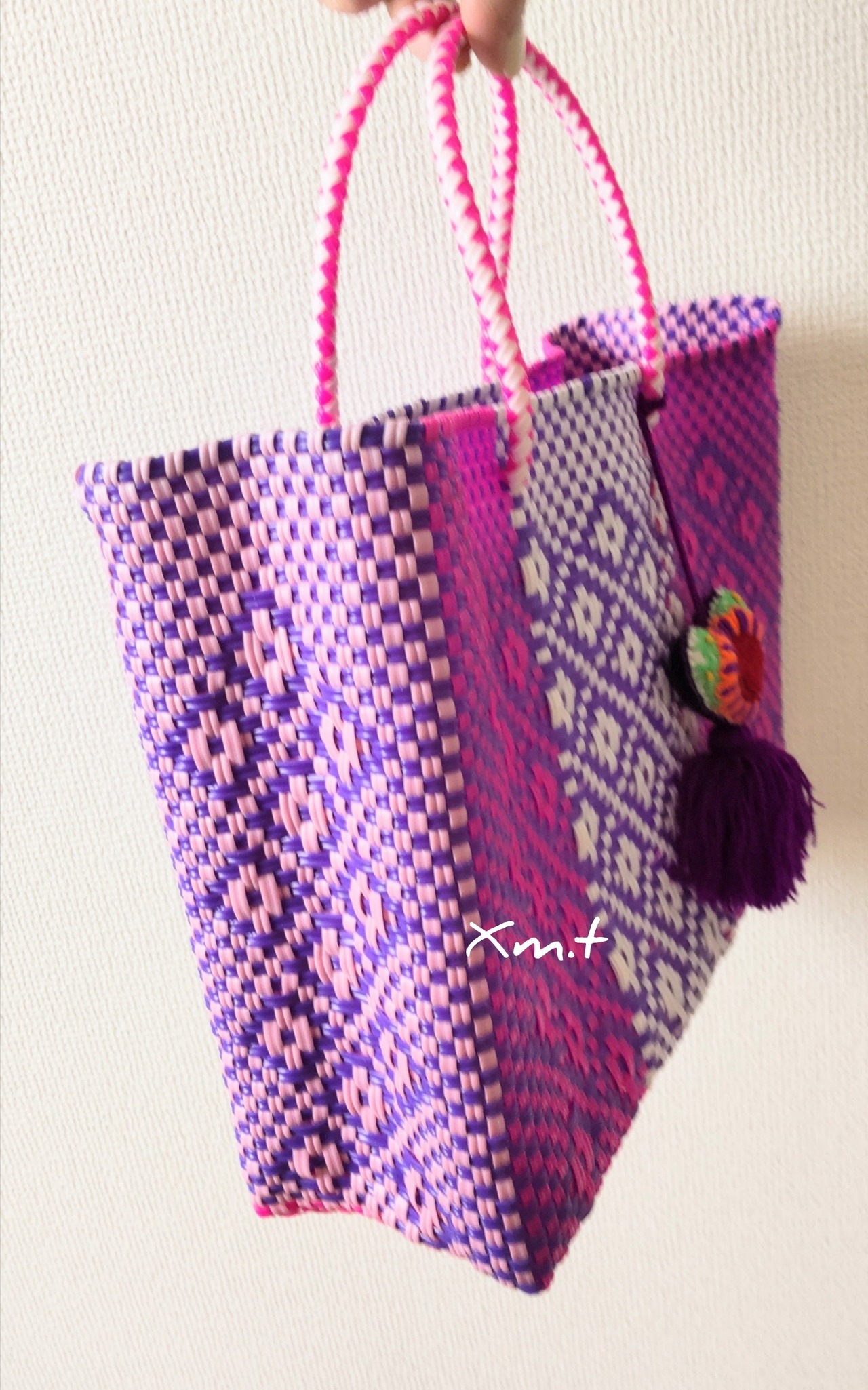 メキシコ、オアハカ州の生産者さんにより再生プラスチックコードで丁寧に編まれています。