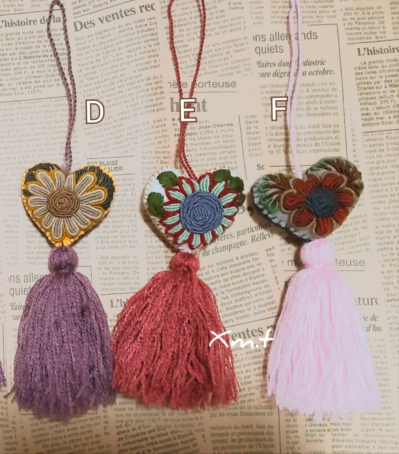 《フェルトのハートに糸がビッシリ!