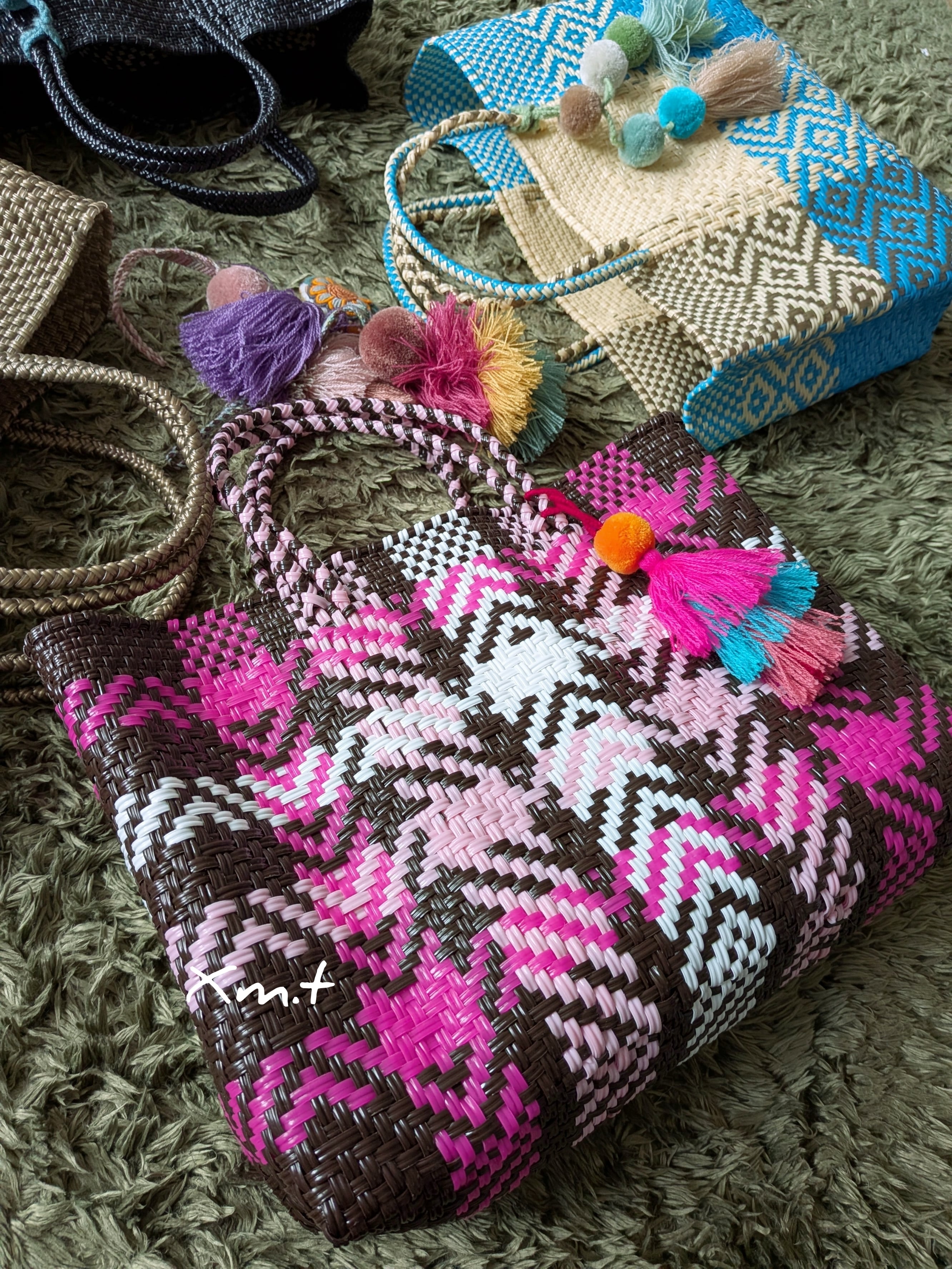 メキシコ、オアハカ州の生産者さんにより再生プラスチックコードで丁寧に編まれています。