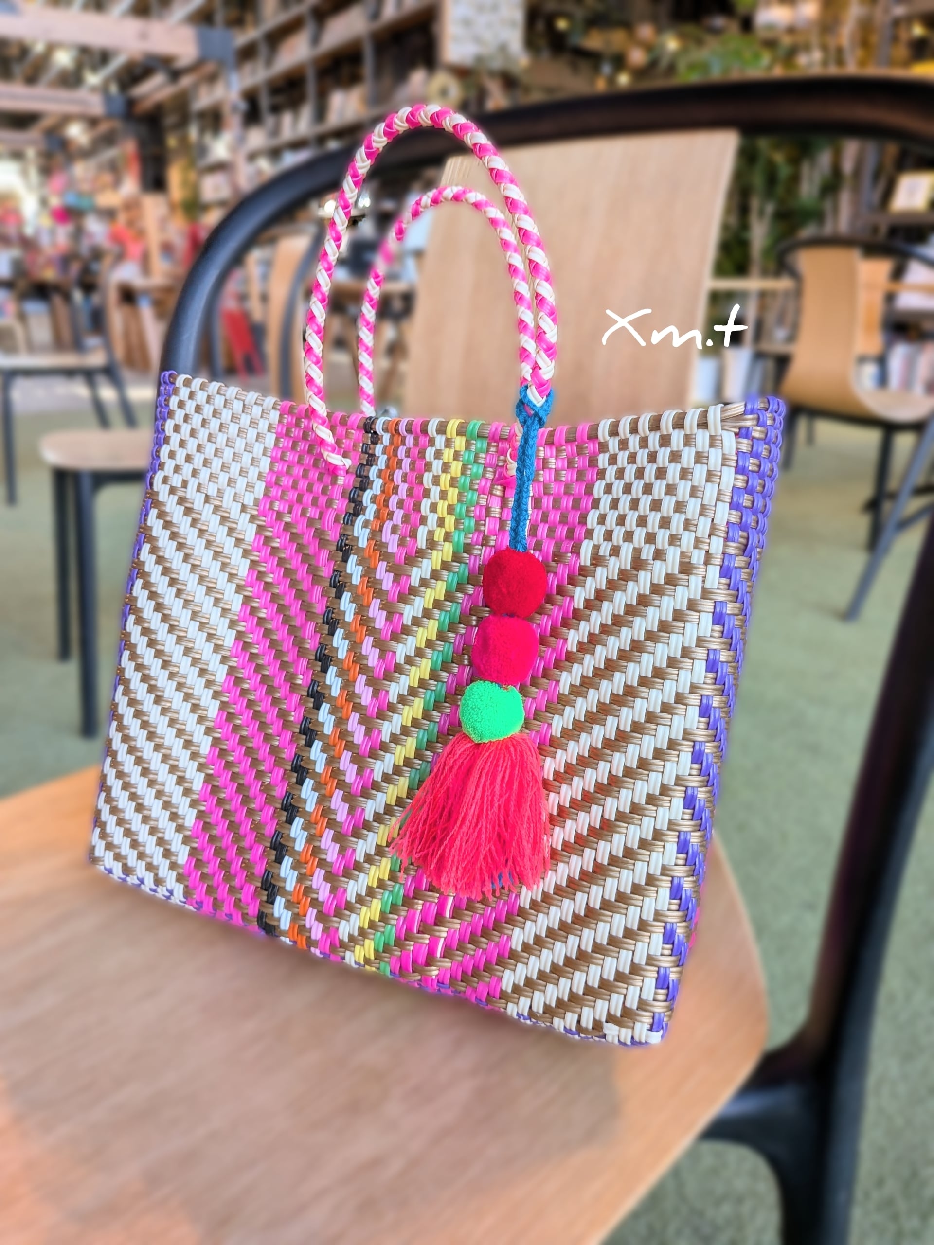 メキシコ、オアハカ州の生産者さんにより再生プラスチックコードで丁寧に編まれています。