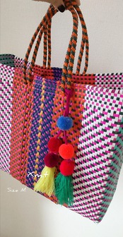 《糸がビッシリとつまったボール。この可愛らしいponponは、メキシコの方がこだわりを持って厳選したチアパスの生産者さんに製作注文しているものです。こちらは5玉の中サイズタイプ。メルカドバッグ以外にもスッキリ使えます。